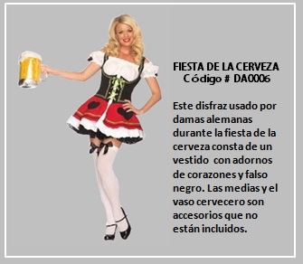 La fiesta de la cerveza, es una tradición que se remonta a principios del siglo XIX y desde entonces se ha escuchado de ella, a través de casi todo el mundo. El Oktoberfest comienza a finales de septiembre pero su duración, de entre 14 y 16 días, hace que termine precisamente en octubre. El colorido de los trajes bávaros es uno de los atractivos de esta fiesta. A continuación te invitamos a recorrer la galería virtual de disfraces que usan las damas jóvenes en esta fiesta.
