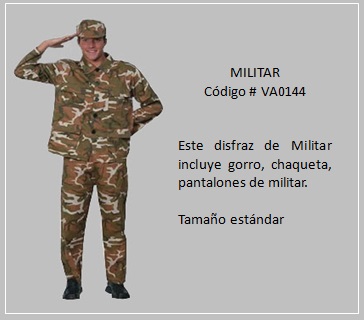 Las fuerzas armadas suelen dividirse en ramas, esto es, servicios armados separados que agrupan los recursos militares (ejército), mar (armada) y aire (fuerza aérea). En el caso de los cuerpos policiales su objetivo es usar la fuerza de forma controlada para imponer el orden y hacer cumplir la Ley. Para convertirte en uno de los personajes militares, de la armada o fuerza aérea, puedes visualizar los disfraces de este tema. Para ello desplace el puntero del mouse sobre la diapositiva y haz clic. A continuación puedes avanzar o retroceder con la flechas correspondientes. Para volver al menú de la página haz clic en la X ubicada en la esquina superior derecha.