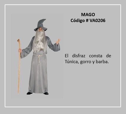 Los magos o ilusionistas, son personajes enigmáticos y que son del gusto de los niños y adultos, los cuáles generan sorpresa al realizar acciones que desafían las leyes de la física resultando a simple vista inverosímiles. Entre las mismas se encuentran hacer aparecer o desaparecer objetos, provocar levitaciones, cortar a personas en dos, adivinar el pensamiento de los miembros del público, etc. Para el desarrollo de la representación se ayudan de diferentes objetos tales como cartas, monedas, pañuelos, pequeños animales (palomas, conejos), cuerdas, cajas, etc.. Entre las narraciones más importantes sobre el tema está la de los Reyes Magos, que tiene su origen en los relatos del nacimiento de Jesús. La tradición más difundida cuenta que vinieron de Oriente, en número de tres, y que iban guiándose por una estrella que les condujo hasta Belén. Allí buscaron al Niño Jesús recién nacido y le adoraron, ofreciéndole oro, incienso y mirra. Otra historia relacionada con los magos, es la del mago Merlín, la que siempre va asociada al nombre del rey Arturo, del cual se dice, era su consejero principal y el que le ayudaba a la hora de tomar decisiones cruciales para el mantenimiento del mítico Camelot. Para visualizar los disfraces de este tema, desplace el puntero del mouse por sobre las diapositivas y haga clic en ella, luego si desea visualizar otras, retroceder o avanzar con las flechas. Para volver a la página haz clic en el signo X en la esquina superior derecha.