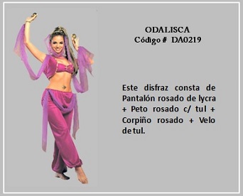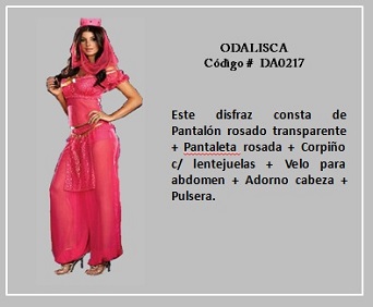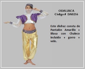 Entre las personalidades reconocidas en el Imperio Otomano están las odaliscas. En términos simple era una esclava que estaba en una etapa de aprendiz o asistente de las concubinas y esposas del sultán, pudiendo más tarde llegar a obtener ese estado, es decir, ser concubina o, con mucha suerte, esposa. La mayoría de las odaliscas eran parte del harem imperial, es decir de la casa del sultán. Para visualizar los disfraces de este tema, desplace el puntero del mouse sobre una diapositiva y haga clic en ella, luego si desea visualizar otras, retroceder o avanzar con las flechas. Para volver a la página haz clic en el signo X en la esquina superior derecha.