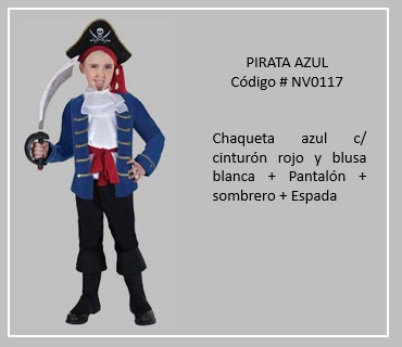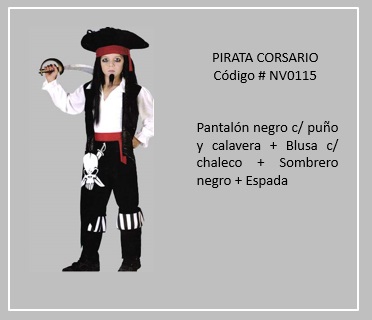 Los “piratas”, eran criminales que actuaban en alta mar y que abordaban los barcos para apoderarse de los bienes que estos transportaban. Lo común al hablar de piratas, es que son feroces hombres ataviados con parches, sombreros, garfios y pañuelos de vivos colores o en su defecto de capitanes de barcos con un deje romántico vestidos de una manera atractiva. Por su parte, los pintores y artistas los representan en la indumentaria de personalidades de los siglos XVIII y XIX, pertenecientes a las tropas de los cuerpos marinos y terrestres, así como de navegantes civiles y ciertos individuos de la nobleza. Es general, en las representaciones de “piratas”, estos terminan vestidos de una mezcla de elementos de cada uno de estos grupos. Para visualizar claramente los disfraces de este tema, haga clic en la diapositiva, luego si desea visualizar otras, retroceder o avanzar con las flechas. Para volver a la página haz clic en el signo X en la esquina superior derecha.