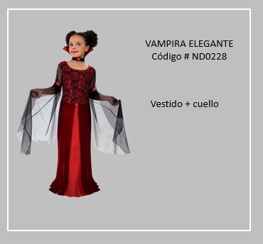 Las vámpiras parecen ser los seres más adaptados en la historia del cine y se han ido transformando según la moda, los gustos personales y las ideas de aquellos que los han llevado al estrellato. Una vampiresa, tiene una connotación mayor que una vámpira; hace referencia a una mujer fatal, es decir, se trataría de una mujer de atractivo irresistible, cuyo poder de seducción acarrea la destrucción de aquellos a quienes seduce. El traje que una vámpira vestía, es un traje muy similar al de las personas ricas en la época final del siglo XIX, es decir, un vestido negro largo, aunque también puedes optar por vestir pantalón y camisa negra, o combinarlo con tonos rojos y granates. En el caso de los vámpiras son afines la ropa de color negra y accesorios rojos, por el tema de la asociación de la oscuridad y la sangre para alimentarse. Para visualizar disfraces de este tema, desplace el puntero del mouse sobre las diapositivas y seleccione la que desee, luego si desea haga click en las flechas para avanzar o retroceder. Para volver a la página haz clic en el signo X en la esquina superior derecha.